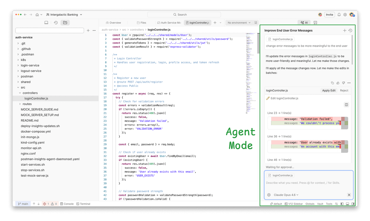 Agent Mode has evolved beyond generating individual tests or documentation. It now coordinates multi-step changes across specs, collections, backend code, and documentation in a single session.