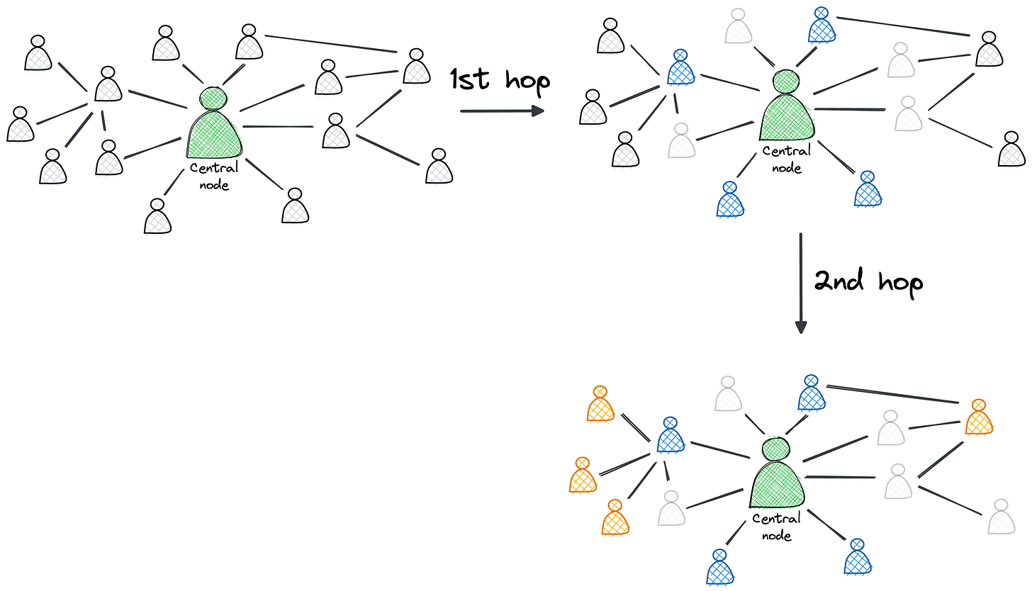 Traditional graph databases store relationships as linked nodes and traverse them one hop at a time.