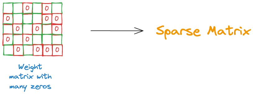 A sparse matrix stores only the connections that exist, which does not waste space by storing any unnecessary data, and only stores the relationships that matter.