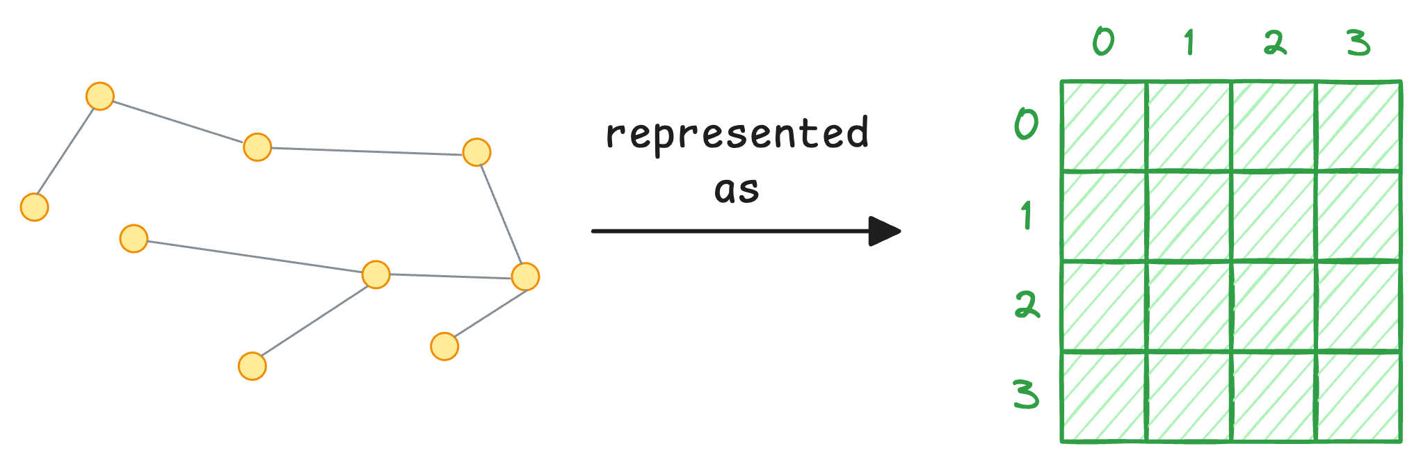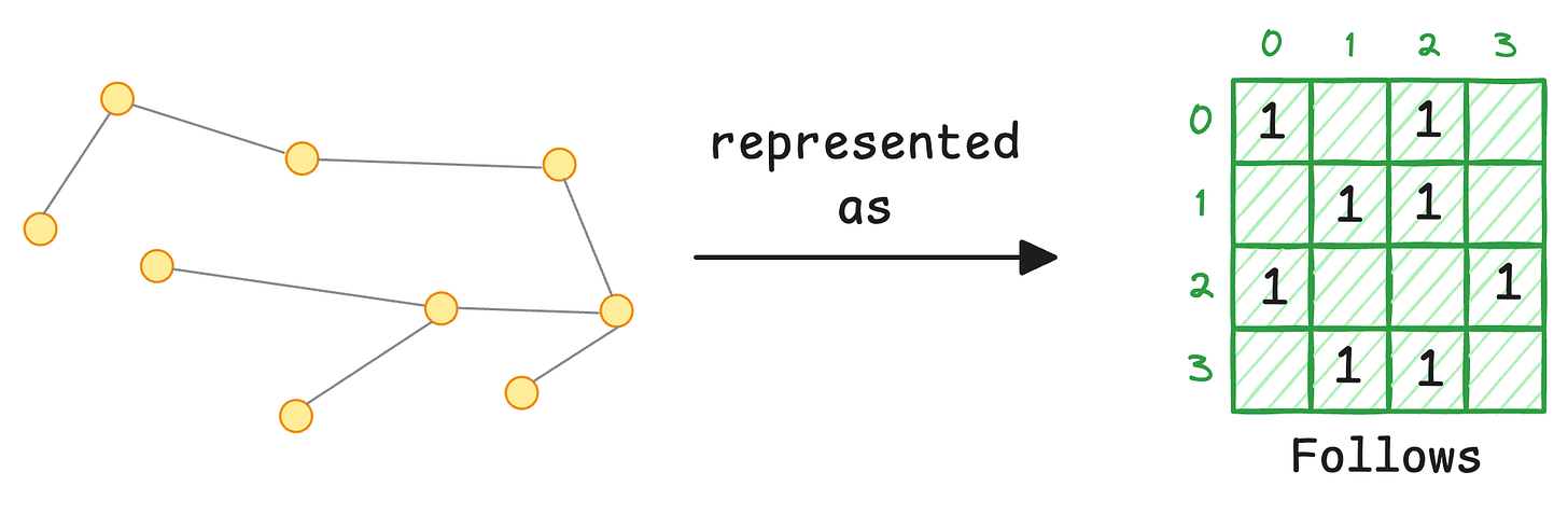 Imagine a simple grid. Rows are source nodes, columns are destination nodes.