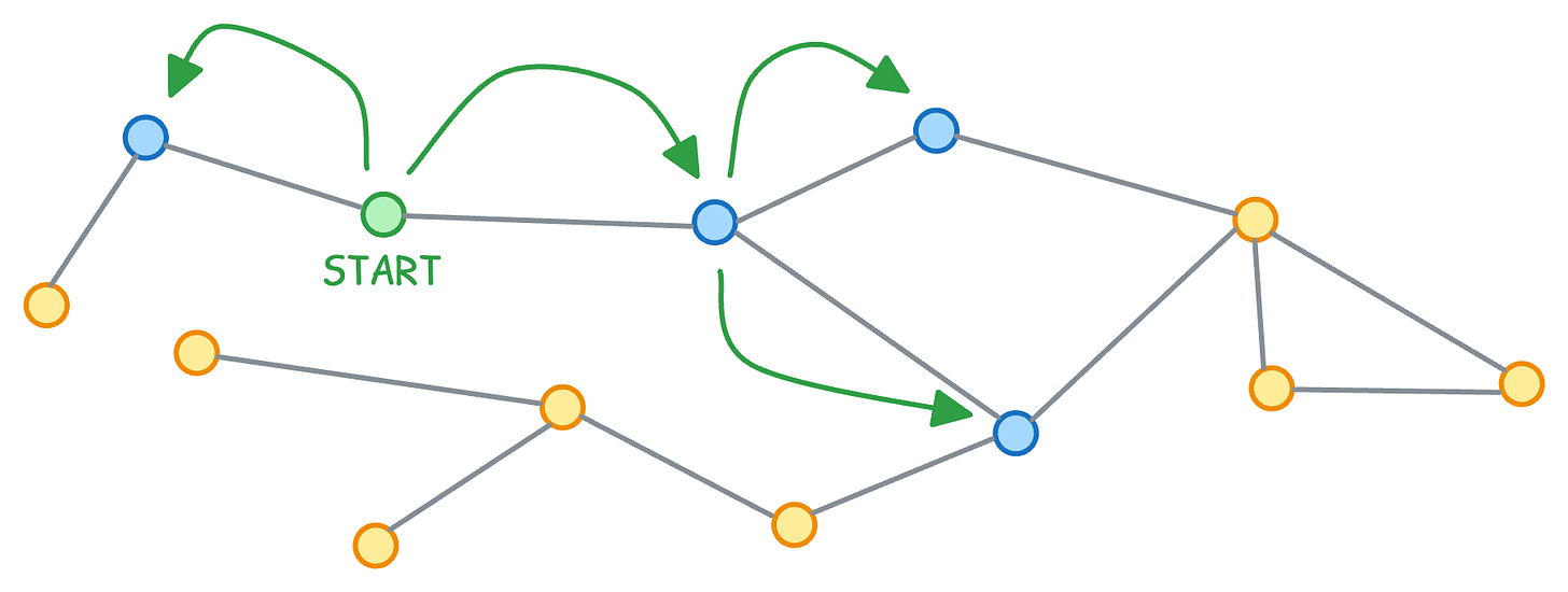 When you query a traditional graph DB, it traverses by “pointer chasing”: