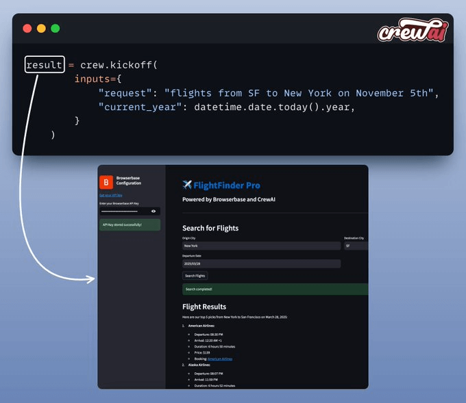 It's powered by Browserbase’s headless-browser tool and can look up flights on sites like Kayak!