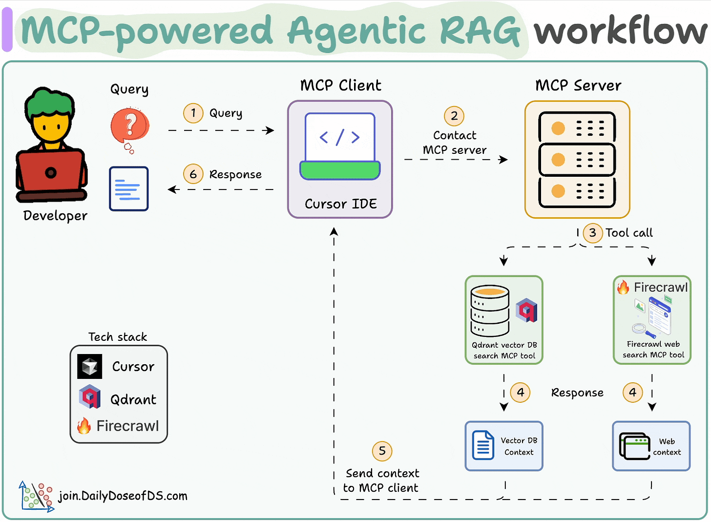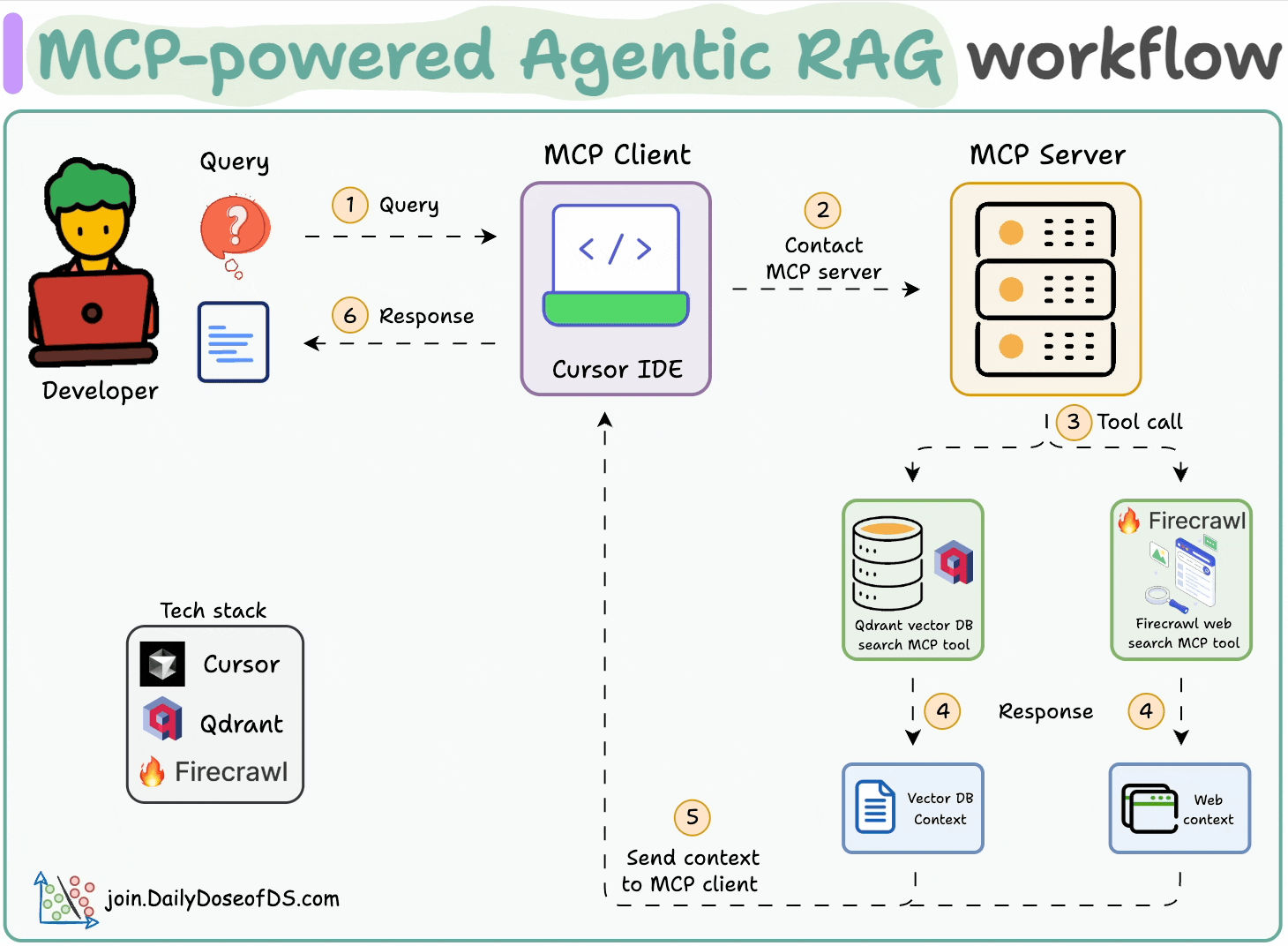 In the video above, we have an MCP-driven Agentic RAG that searches a vector database and falls back to web search if needed.