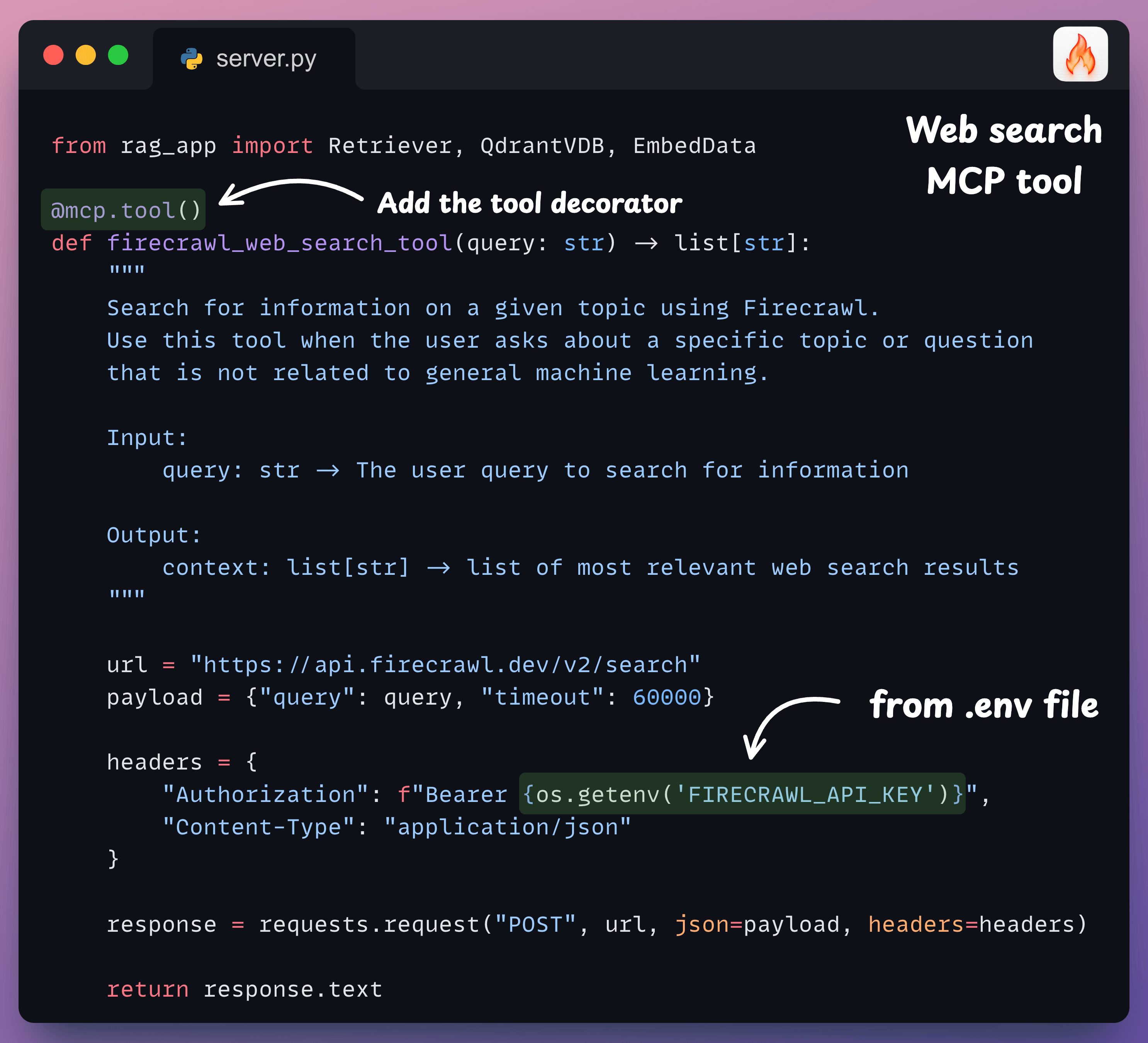 Thus, we resort to web search using Firecrawl's search endpoint to search the web and get relevant context.