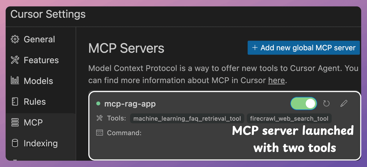 Above, we have an MCP tool to query a vector DB. It stores ML-related FAQs.