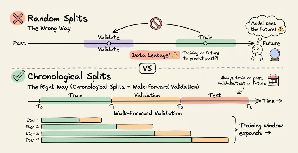 If your data has a time component, random splits cause data leakage.