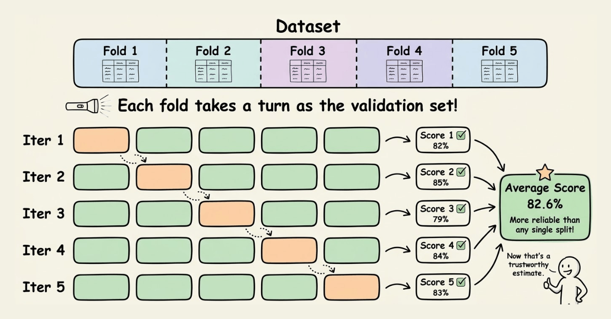 Split your data into k folds (commonly k=5 or k=10).