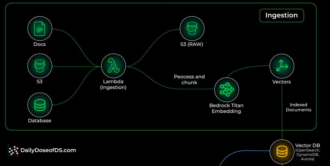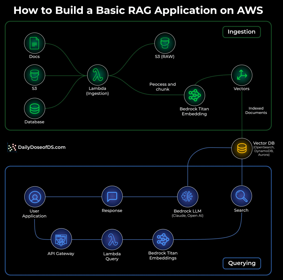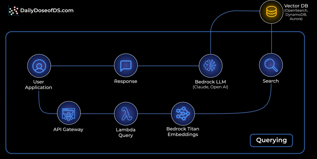 The visual below shows the exact flow of how a simple RAG system works inside AWS, using services you already know.