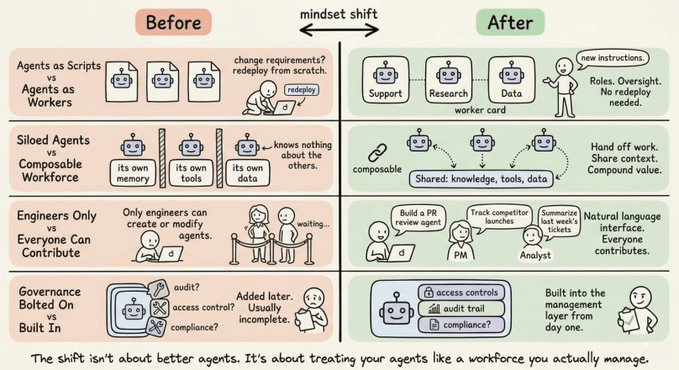 Right now, most teams are in the “writing scripts” phase. You build an agent. It does one thing well. You ship it. Then you build another. And another. Before long, you have a dozen agents doing a dozen different things, none of which know about each other, and no single place to manage all of them.