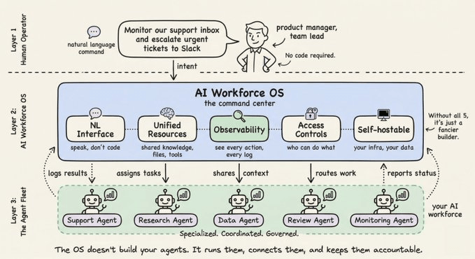 The key insight is this: an AI workforce OS is not a builder. It’s a command center.