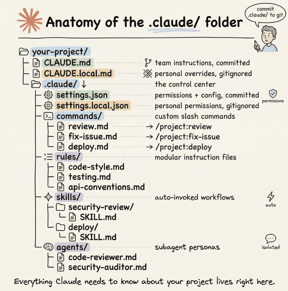 Slash Commands store workflow shortcuts in .claude/commands/ so you can trigger complex flows with a single keystroke.
