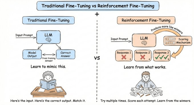 This is Reinforcement Fine-Tuning (RFT). You give the model a reward signal and let it discover the best strategies on its own.
