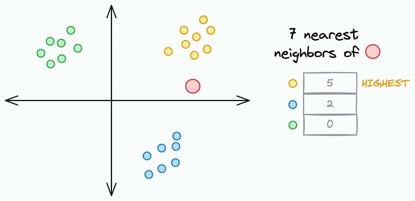 7nearest neighborsassigning it to the class with the highest count among those 7 neighbors.
