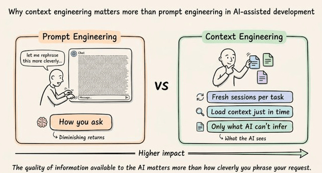 Context engineering is the practice of designing what information is available to the AI at any given moment. It matters far more than how cleverly you phrase your request.