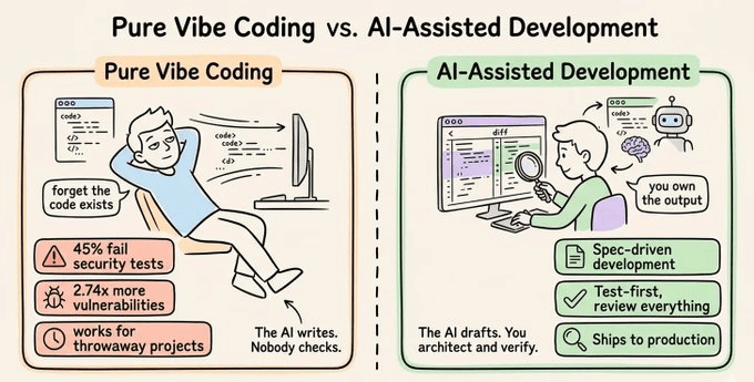 Pure vibe coding vs. AI-assisted development