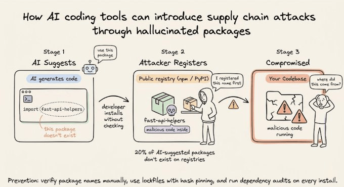 Supply chain vigilance. AI models suggest packages that don’t exist on public registries (a vector for “slopsquatting” attacks), or pull in unreviewed transitive dependencies. Always verify dependencies.
