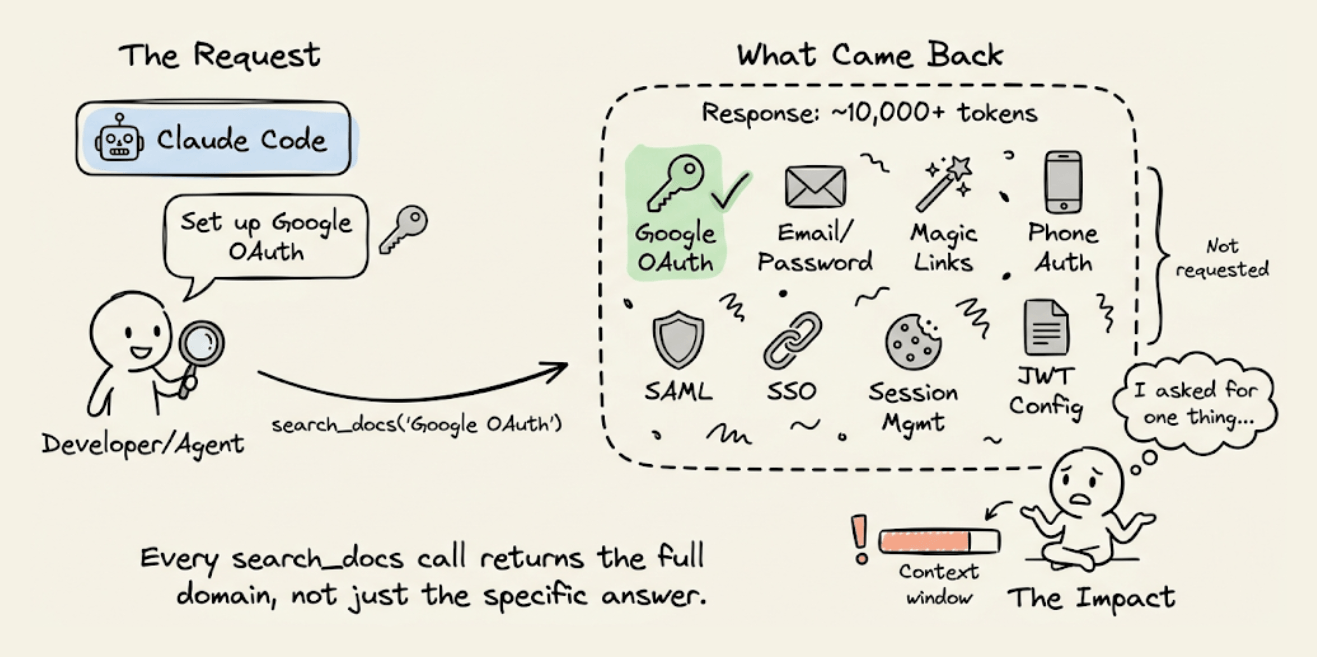 If the agent asked for OAuth setup instructions, it got the entire authentication docs, including sections on email/password, magic links, phone auth, SAML, and SSO.