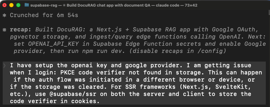 To make this concrete, we built the same DocuRAG app using Claude Code.