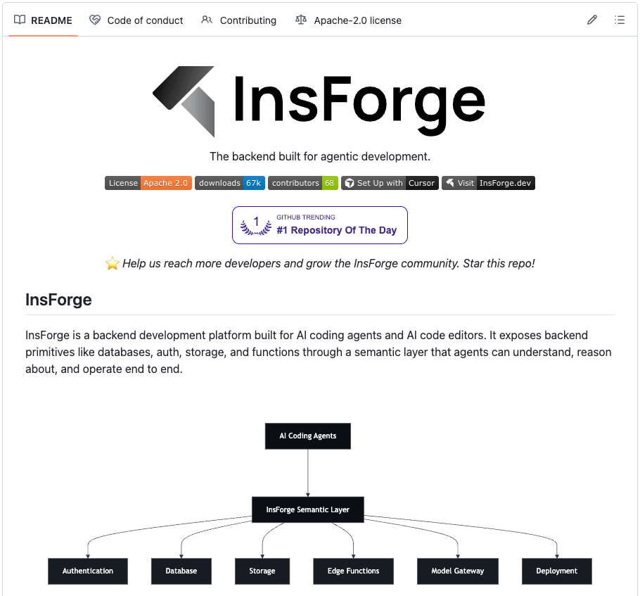 To see what this looks like in practice, InsForge (open source, Apache 2.0) implements exactly this approach.