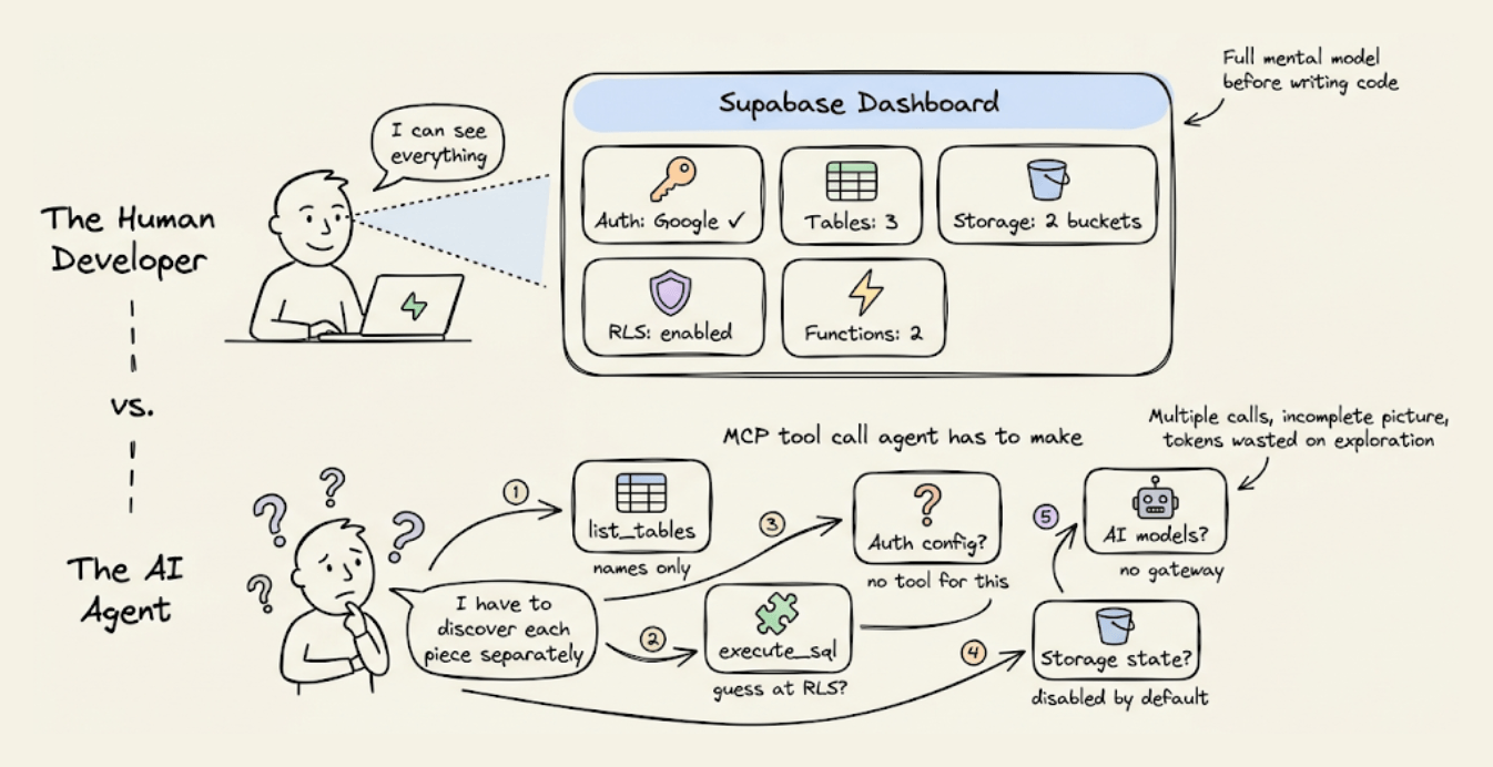 Supabase is a great backend. But it wasn’t designed to be operated by AI agents, and the MCP server that was added later inherits that limitation.