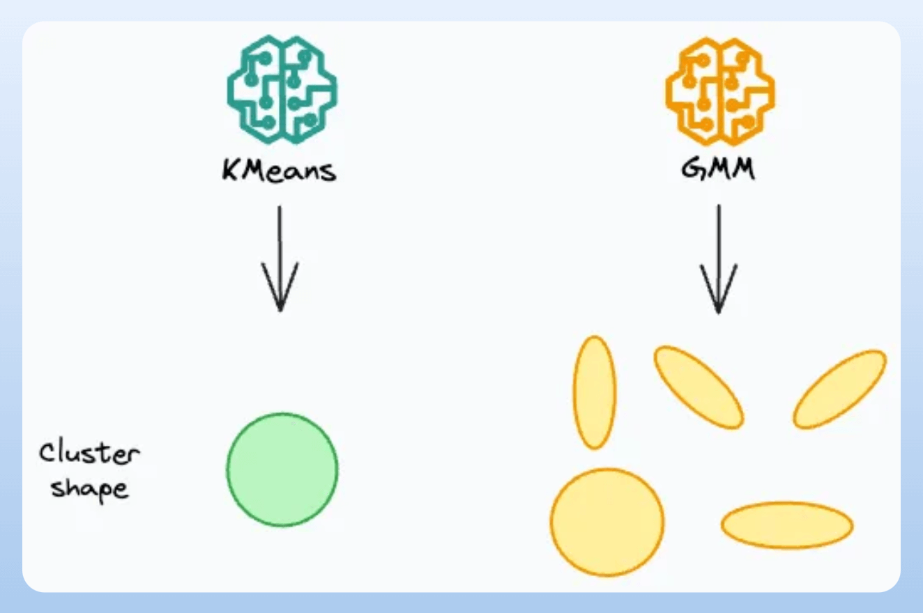 Gaussian Mixture Models address these limitations since they cluster a dataset that has a mixture of many Gaussian distributions.
