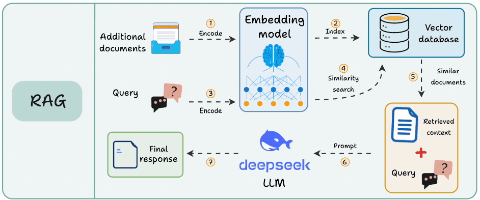 A user asks a question, it flows through multiple components, and eventually, a response comes out.