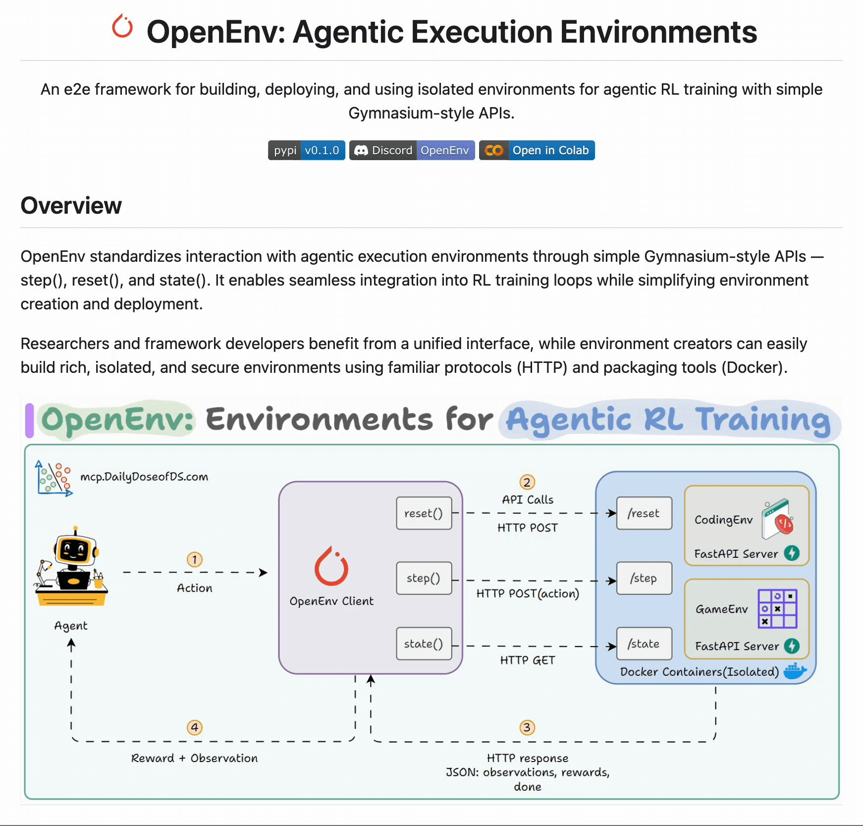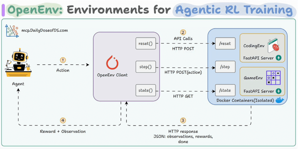 Just like the MCP standardized tool calling for agents, OpenEnv standardizes how agents interact with RL training environments.