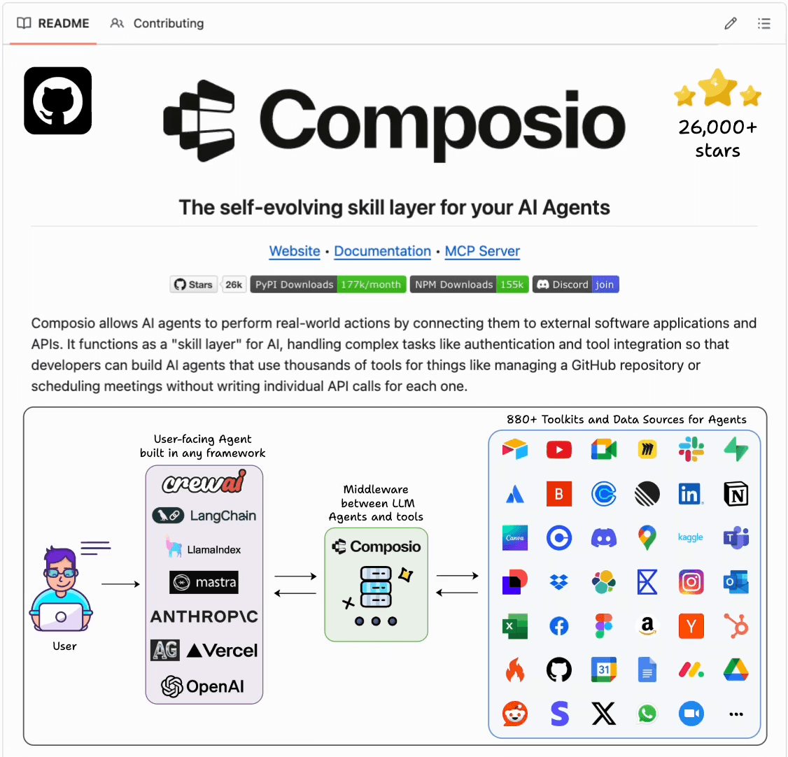 Think of it as the “skill layer” that gives Agents an interface to interact with over 10k tools while building practical knowledge from those interactions.