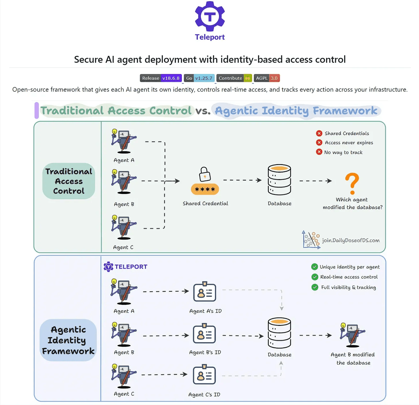 A better approach is actually implemented in Teleport, which is an open-source Agentic Identity Framework that treats identity itself as the control plane and enforces access at the moment it happens.