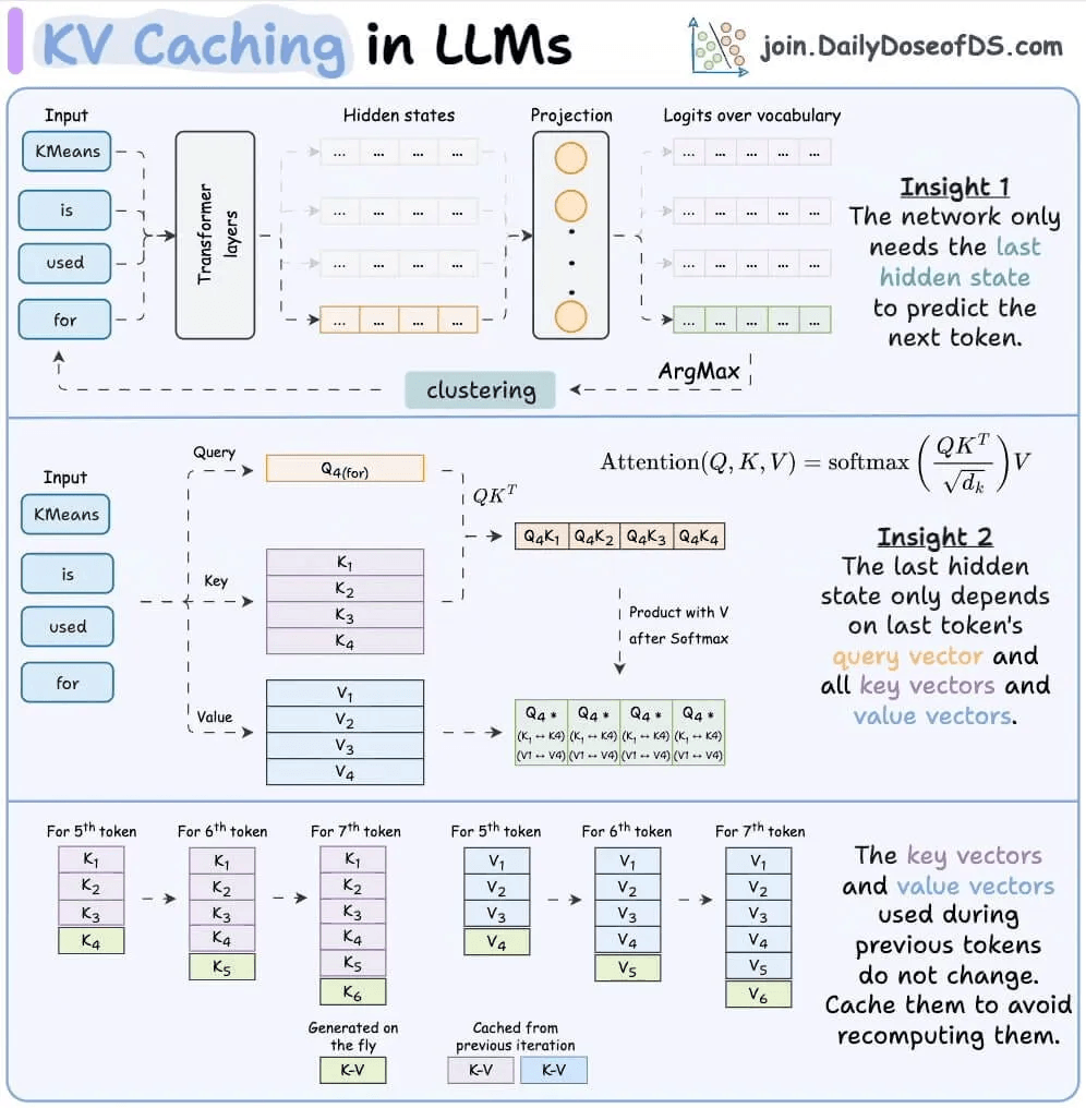 During LLM inference, the model stores the key and value vectors of all previously generated tokens in memory. This is the KV cache (we covered KV caching in detail here).