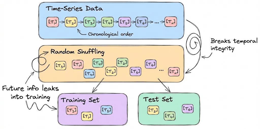 This is the most straightforward but pernicious case. Training data somehow bleeds into the test set. For example, random shuffling might break temporal integrity in time-series data, accidentally leaking future information into the model’s eyes.