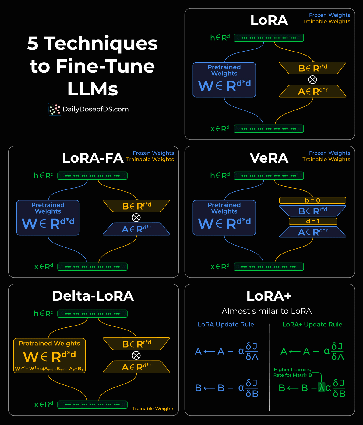 Also, we have covered several LLM fine-tuning with code techniques below: