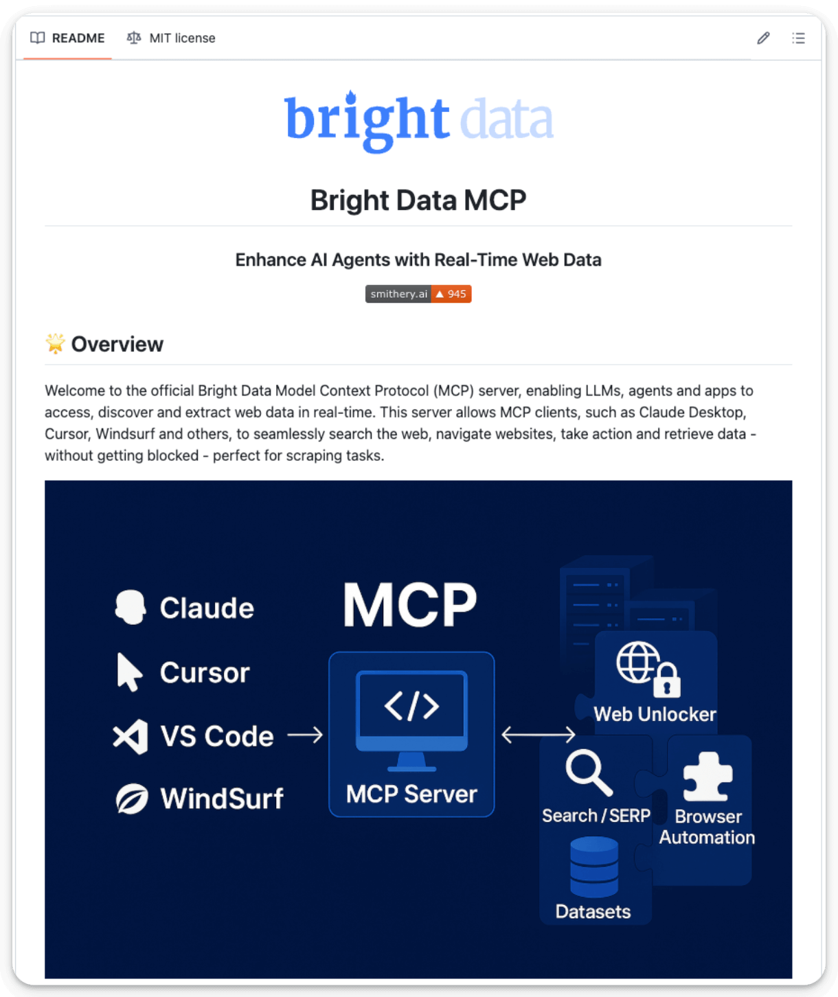 Bright Data MCP server gives you 30+ powerful tools that allow AI agents to access, search, crawl, and interact with the web without getting blocked.
