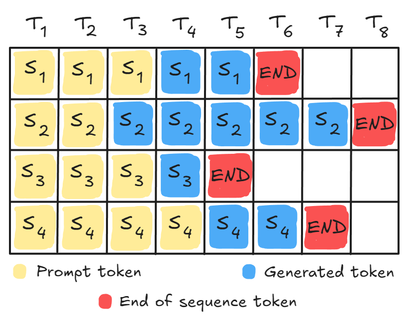 So if you batch some requests, all will finish at different times, and the GPU would have to wait for the longest request to finish before it can process new requests. This leads to idle time on the GPU: