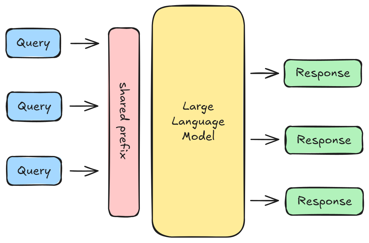 But in many workflows, inputs like the system prompts are shared across many requests. So we can avoid recomputing them by using these KV vectors across all chats: