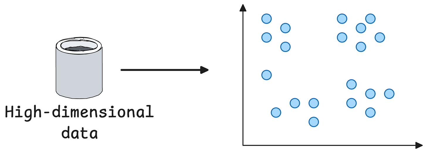 The reason is that in high-dimensional space, there’s plenty of room for points to spread out. But when we squeeze everything into 2D, that room disappears.