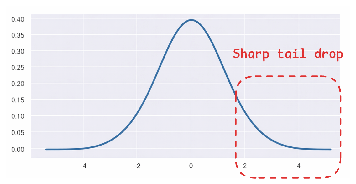 The Gaussian distribution makes this worse because its tails drop off quickly. Distant points in high dimensions get mapped to very small probabilities, so the algorithm doesn’t push them far enough apart in 2D.