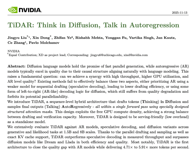 TiDAR gets you both in a single forward pass.