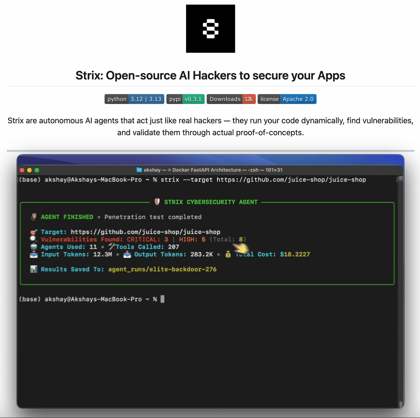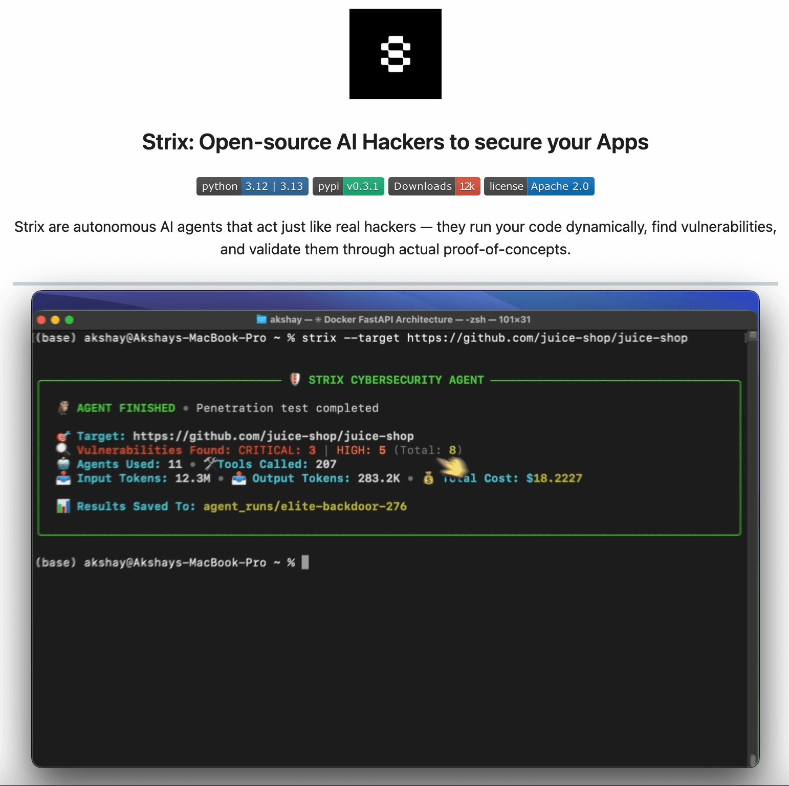 Strix is an open-source framework that deploys autonomous AI agents that act like real hackers.