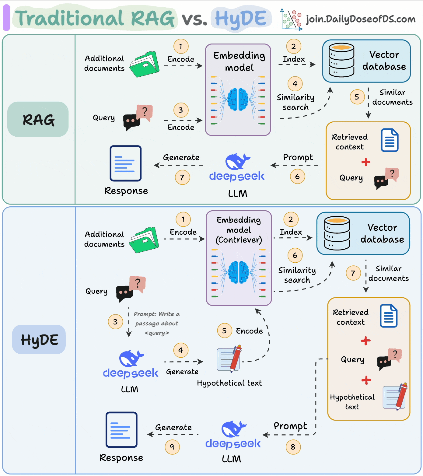Traditional RAG vs. HyDE.