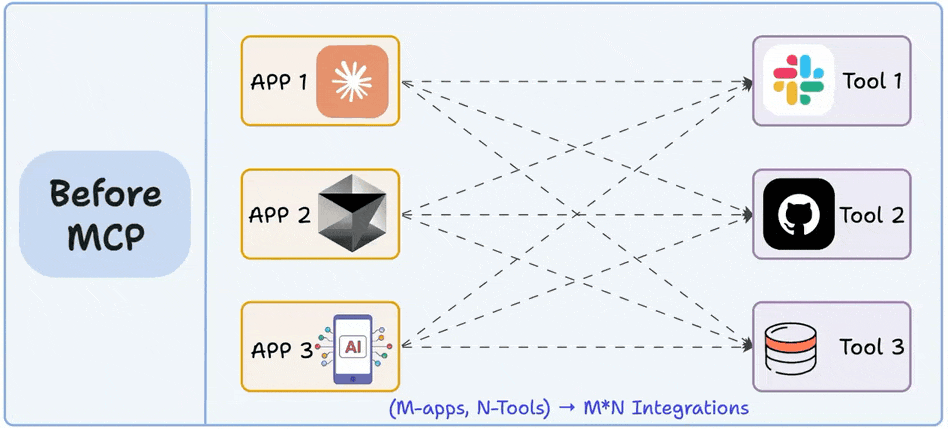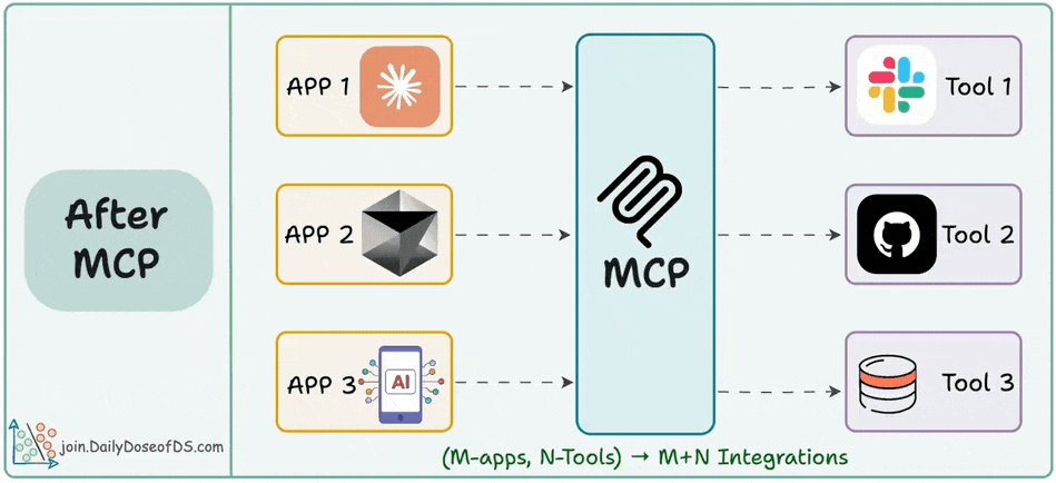 This reduces the required mappings from M×N to M + N, just like MCP does for AI tools and apps.