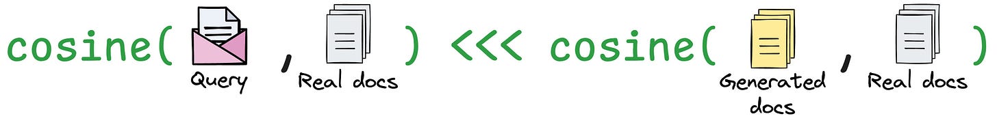 This produces a vector embedding that is expected to be more similar to the embeddings of actual documents than the question is to the real documents: