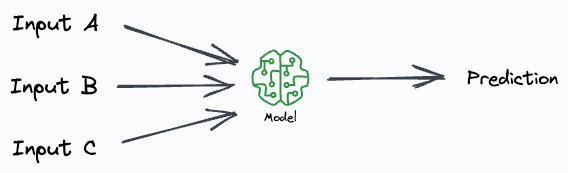 Imagine our deployed model takes three inputs to generate a prediction: