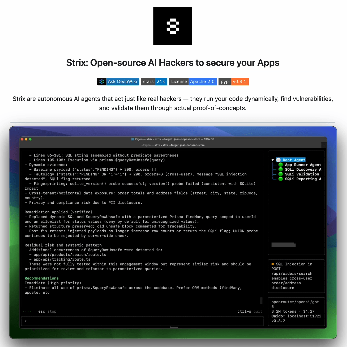 An automated approach is actually implemented in Strix, a recently trending open-source framework (23k+ stars) for an AI pentesting agent.