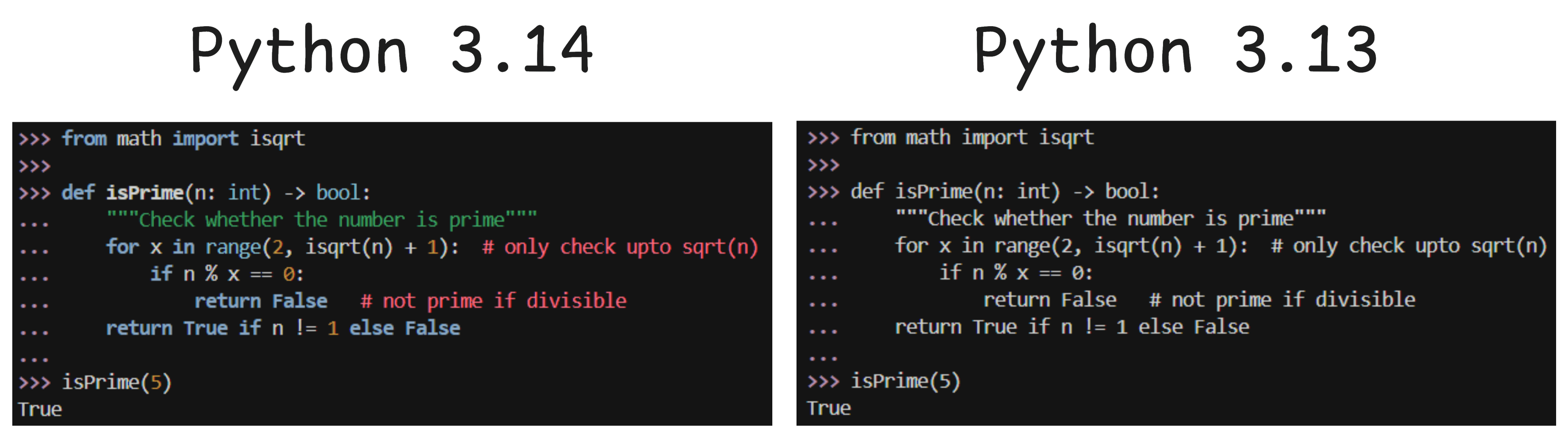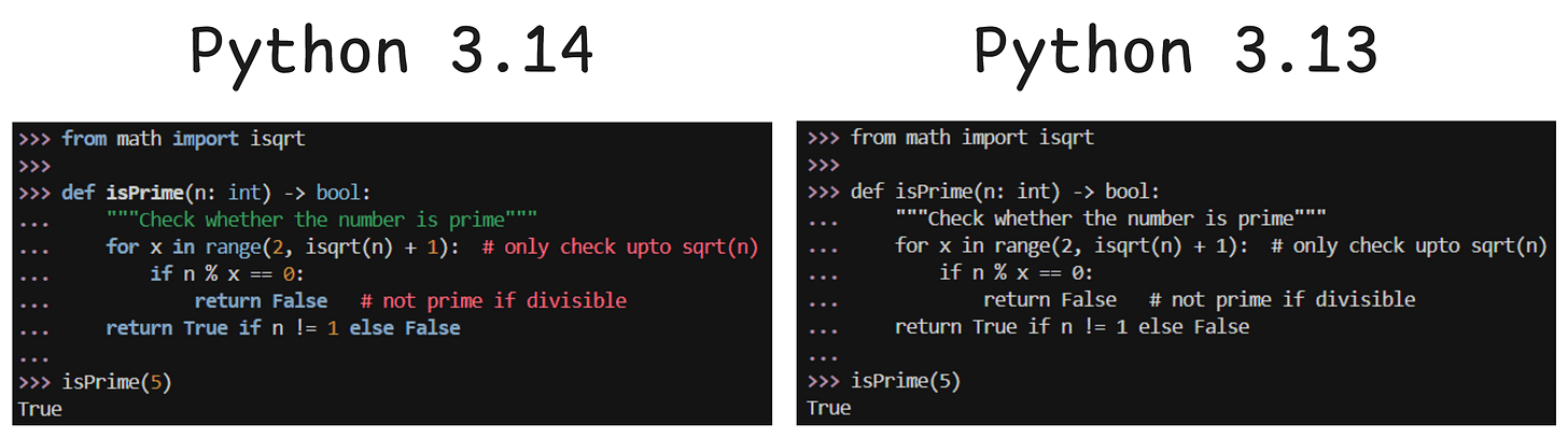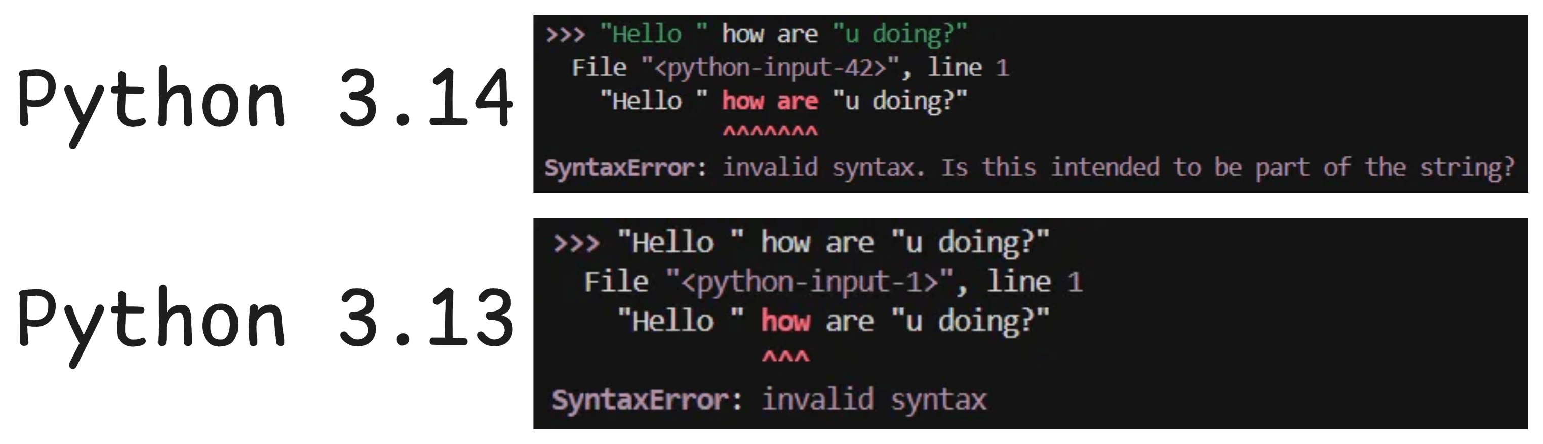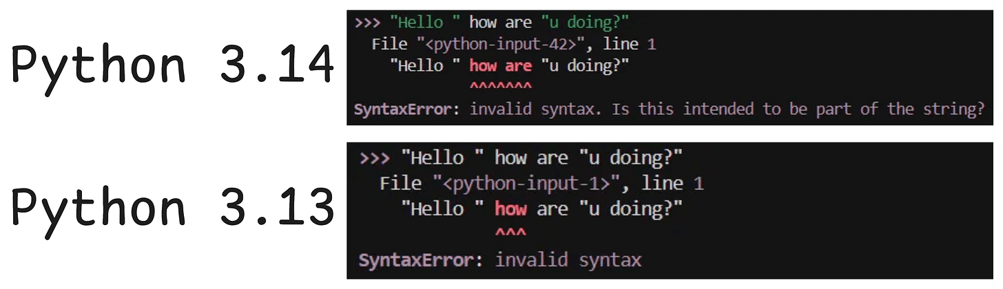 Here’s another comparison of error messages between 3.14 and 3.13: