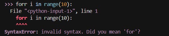 Moving on, Python is now more capable of recognizing common typos and suggesting the correct keyword or syntax.