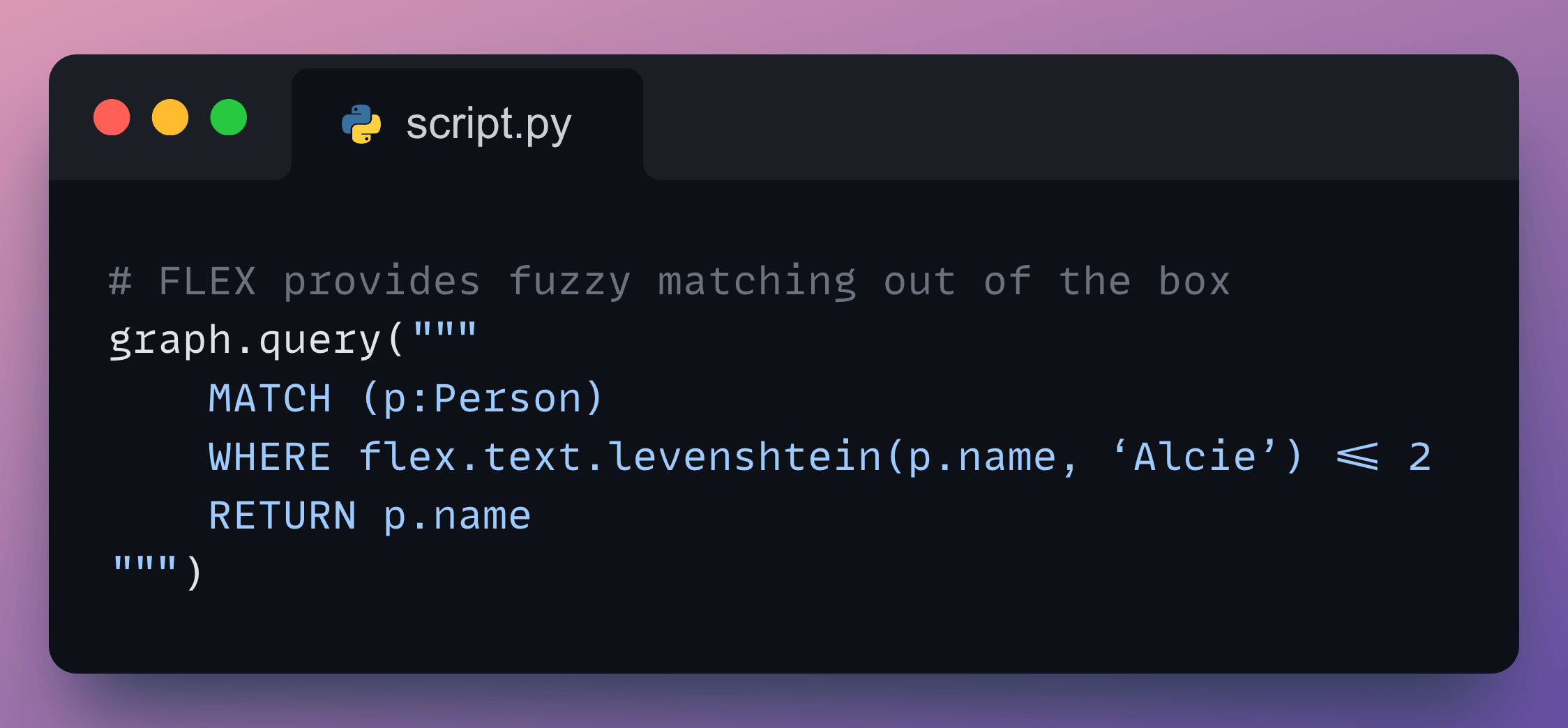 Example: fuzzy matching for user search. Someone types “Alcie” instead of “Alice.”