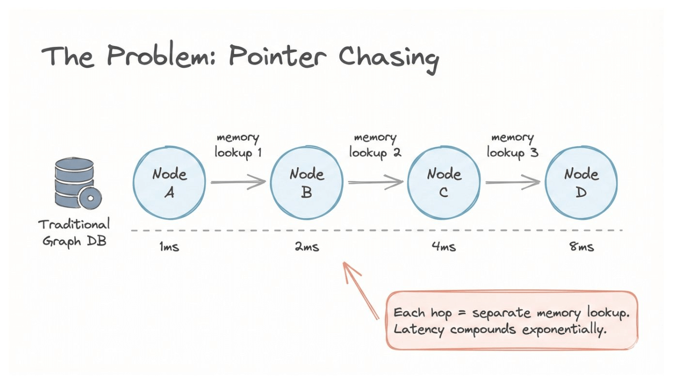 For simple queries, this works fine. But when your agent needs to perform multi-hop reasoning across thousands of entities in real-time, every millisecond compounds.