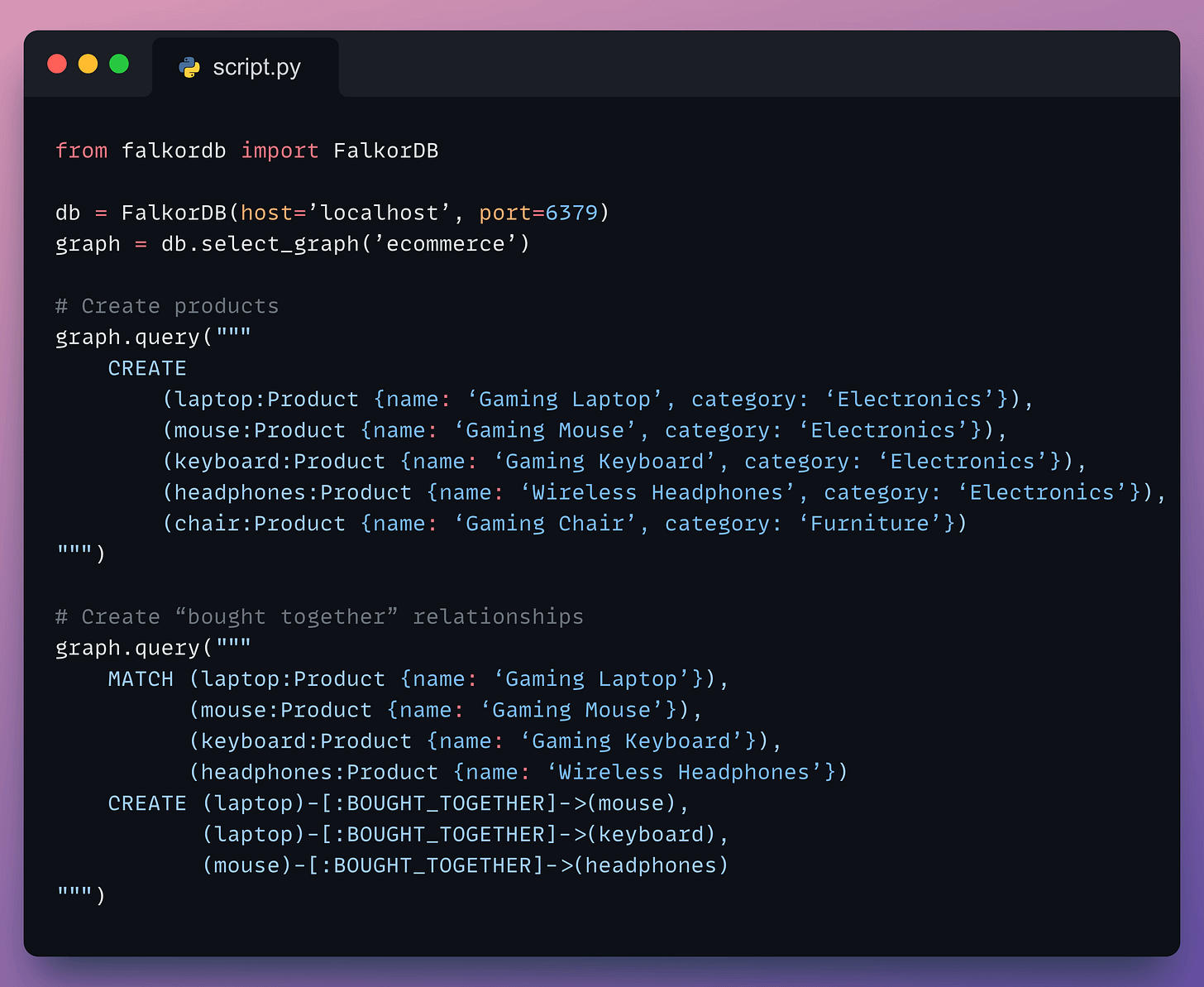 Let’s create a graph for an e-commerce store:
