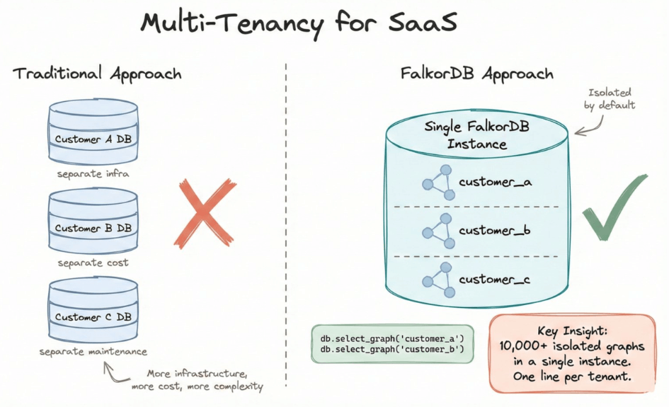 FalkorDB supports 10,000+ isolated graphs in a single instance: